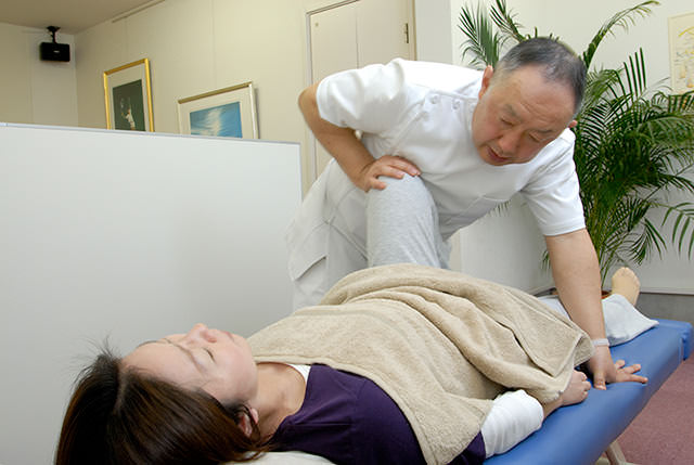 最初に全身(脊椎・骨盤)の歪みをチェックさせていただきます。あとは、緊張している筋肉をほぐし、血流の低下を解消してあげます。血流が良くなることで、凝りとなっていた蓄積された老廃物質の流れがよくなります。